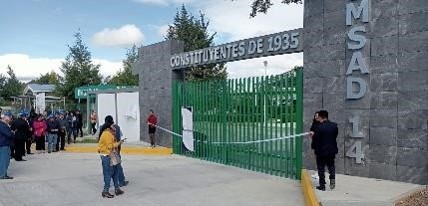 Resultado de gestión con la Dirección General quien apoyo con el portón de acceso de autos y un gran apoyo de la Presidencia Municipal del municipio de Cuaxomulco quien aporto el 100% del recurso de la fachada.