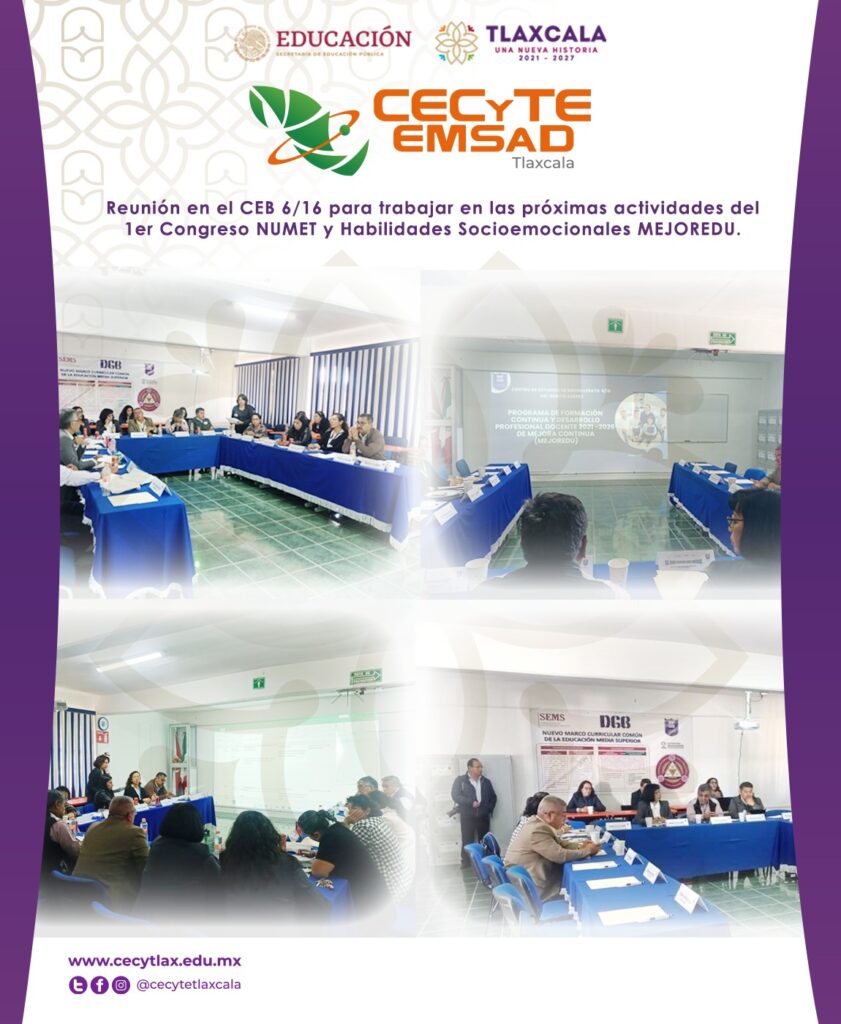 Con éxito se llevó a cabo una reunión de autoridades educativas en el @CEB 6/16 LIC Benito Juárez oficial para trabajar en la logística del programa de Habilidades Socioemocionales MEJOREDU y el diseño del programa de actividades de la #ExpoEMS “Humanidades, Ciencia y Tecnología” en el marco del 1er Congreso NUMET.