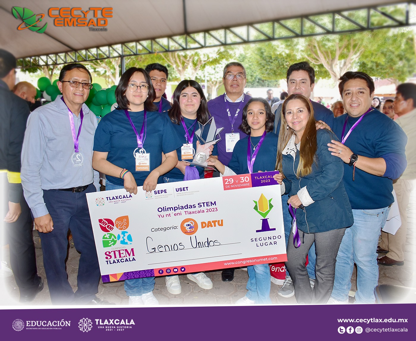 ¡Felicidades a Genios Unidos del Centro EMSAD 11 Yauhquemehcan por su brillante logro en la Olimpiada STEM Yu´nt eni Tlaxcala 2023! ![]()