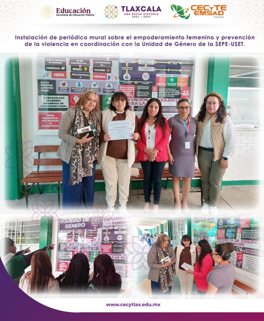 Instalación de periódico mural sobre el empoderamiento femenino y prevención de la violencia en coordinación con la Unidad de Género de la SEPE-USET.