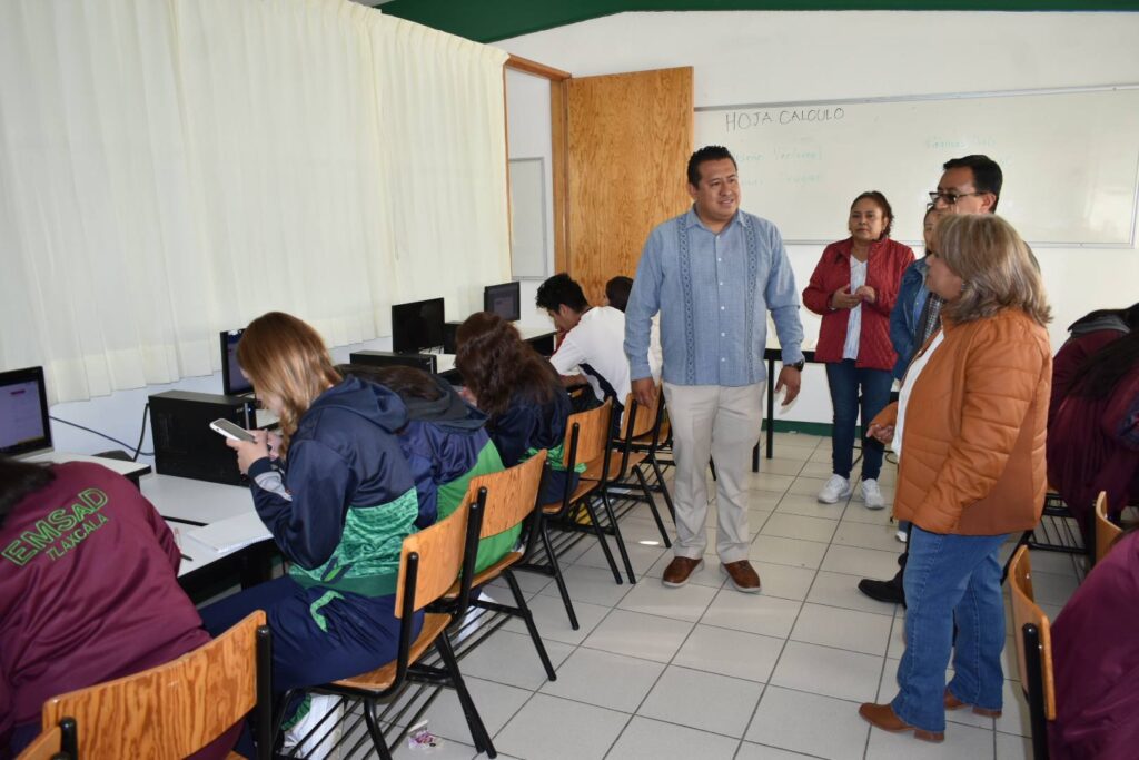 Arrancamos el cuarto día de recorridos a planteles en el Emsad Yauhquemehcan, dónde el director general, Blas Marvin Mora, recorrió las aulas y dirigió un mensaje a las y los estudiantes.